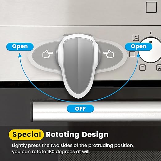 - 【Special design】Baby safety oven lock with two-button design can be freely rotated 180 °. Press and hold the two buttons and rotate 90° to unlock, then push back to the original position can be locked. It can prevent children from easily opening the oven.